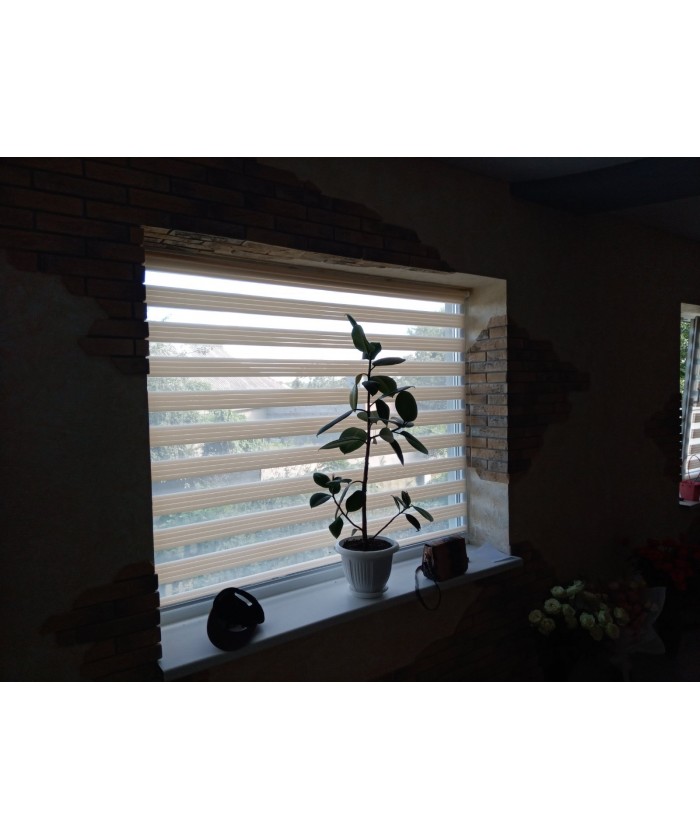 Тканинні ролети День-Ніч бежевого кольору з широкою смугою з тканини ВМ 2200